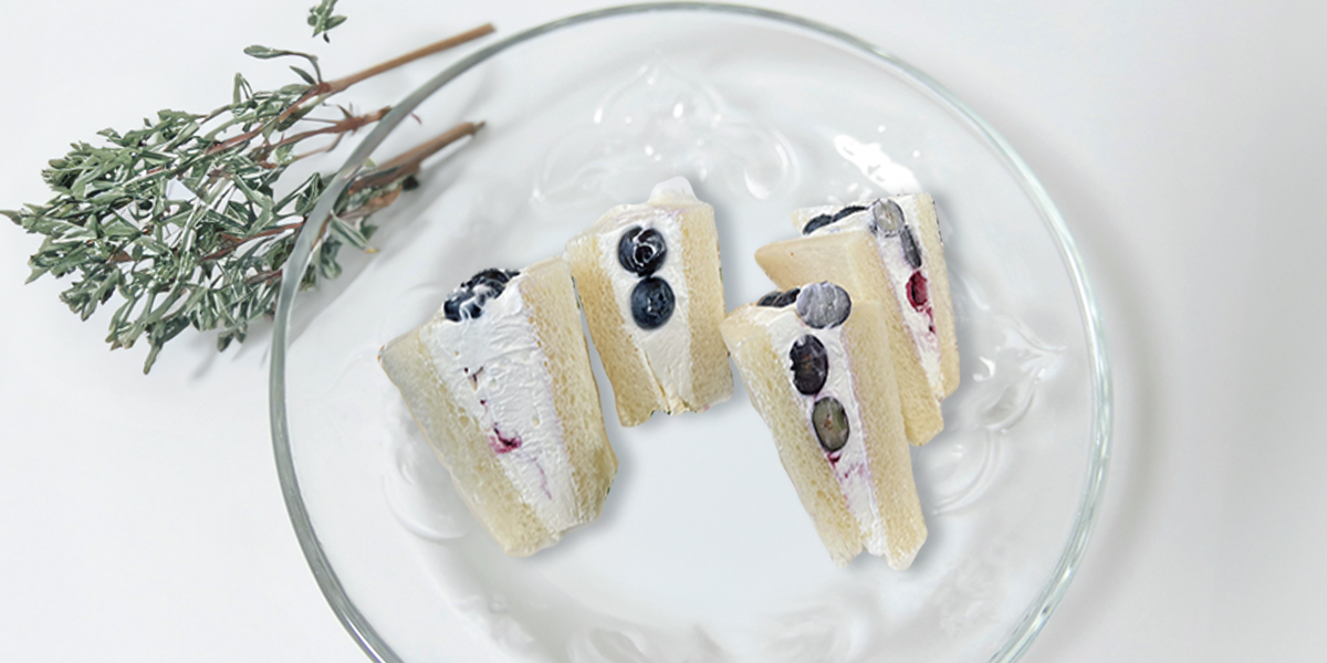 食パンにクリームチーズを塗り、ブルーベリーを挟むだけの簡単フルーツサンドです。